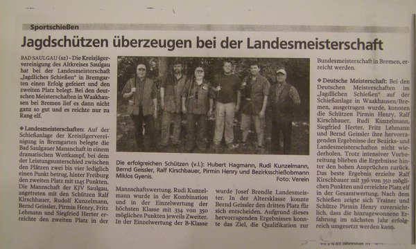 Die Schießmannschaft der Jägervereinigung-Altkreis Saulgau beginnt ab dem 01.04.2025 mit dem Training.