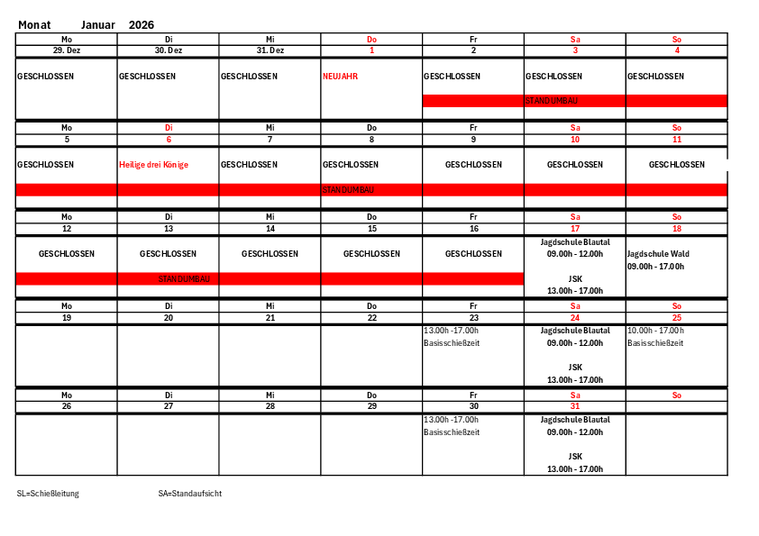 Dienstag: 13:00 Uhr - 17:00 Uhr Freitag: 13:00 Uhr - 17:00 Uhr Sonntag gem. Öffnungszeitenplan